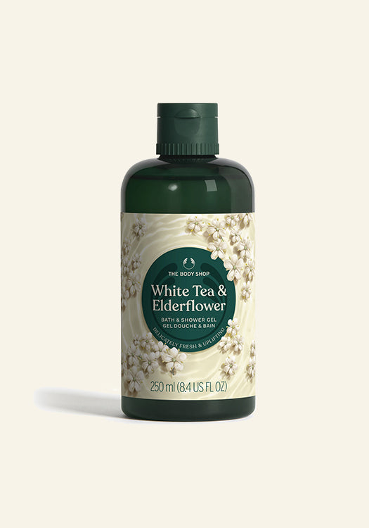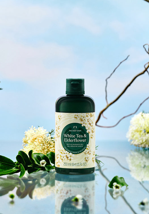 Elevate your shower routine with our White Tea & Elderflower Bath & Shower Gel.